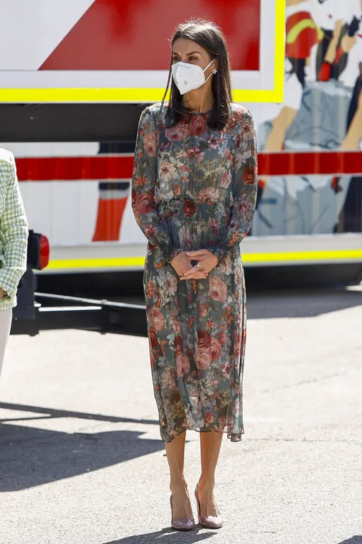 Для недавнего появления на мероприятии Красного креста она выбрала платье с изящным цветочным принтом Zara. Это уже третье появление королевы в одной и той же вещи. До этого она надевала ее в 2017-м и 2020-м годах. И каждый раз у нее получался принципиально разный образ за счет обуви и аксессуаров. Так, если год назад королева выбрала удобные эспадрильи на танкетке (одна из ее любимых пар летней обуви), то на этот раз предпочла пыльно-розовые остроносые туфли на устойчивом каблуке. Получилось куда более нарядно и торжественно — а ведь, казалось бы, в центре образа одна и та же вещь.