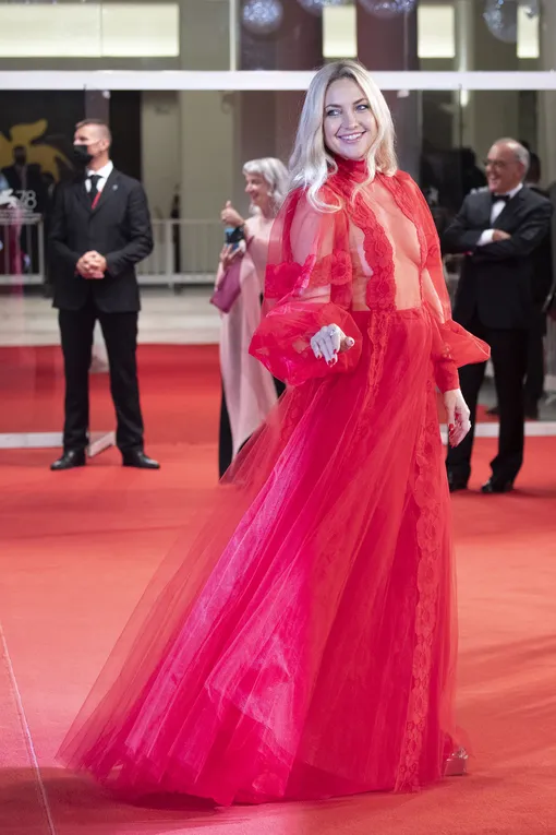 На Венецианском кинофестивале все звездные гости стремятся показать свои самые яркие, необычные и просто красивые образы. Мы уже восхищались Зендаей в «мокром» бежевом платье Balmain, Дакотой Джонсон в вечернем наряде Gucci, усыпанном бахромой их сияющих стразов, и Аней Тейлор-Джой в ярко-розовом кутюрном луке Dior. Теперь пришла очередь Кейт Хадсон: актриса пришла на премьеру своей новой работы — фильма «Мона Лиза и кровавая луна» — и ее образ заслуживает не менее пристального внимания.
