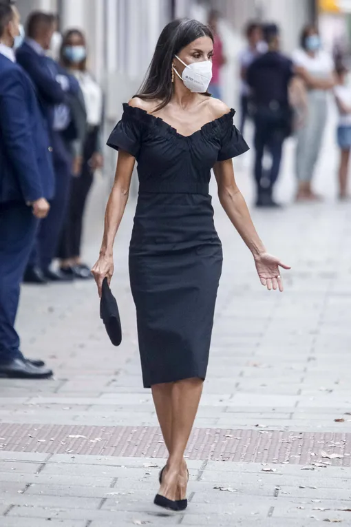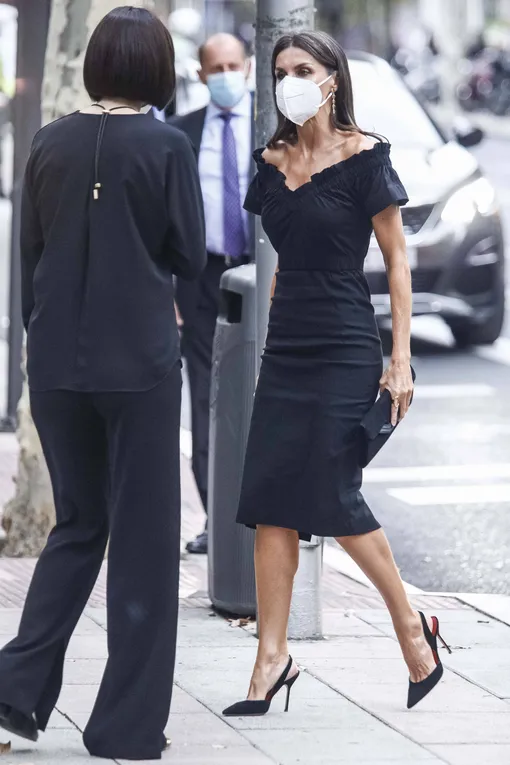 Вечная классика: королева Летиция в маленьком черном платье и туфлях-слингбэках на высокой шпильке