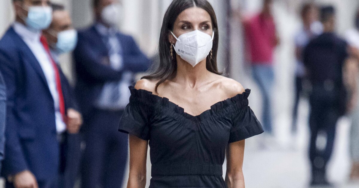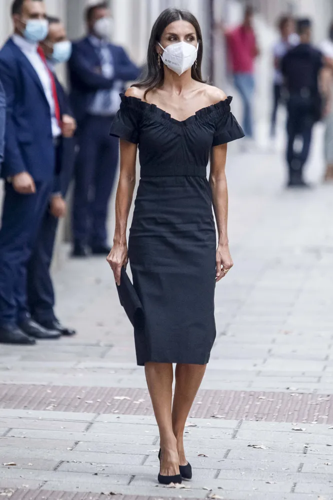 Вечная классика: королева Летиция в маленьком черном платье и туфлях-слингбэках на высокой шпильке