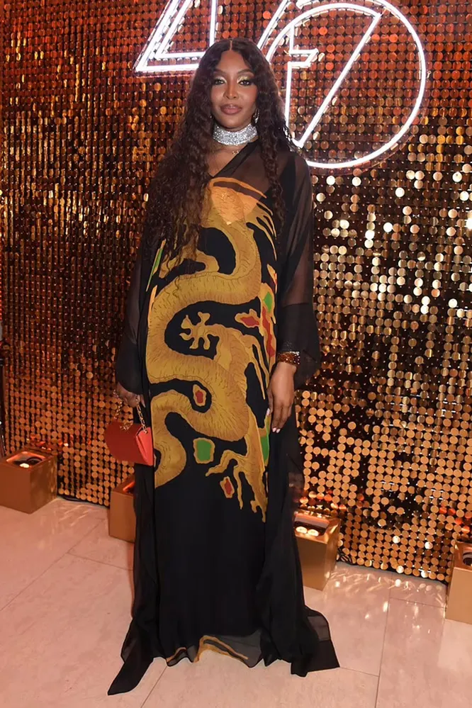 Девушка в платье с драконом: Наоми Кэмпбелл на вечеринке в Лондоне