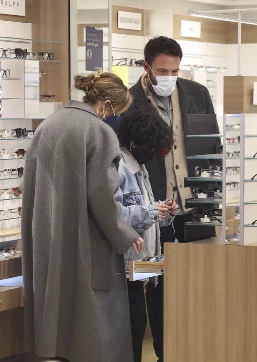 Кажется, между Дженнифер Лопес и Беном Аффлеком все серьезнее некуда: в последнее время пара все чаще проводит время с детьми друг друга. В прошлые выходные воссоединившиеся возлюбленные отправились в кино в компании всех четырех детей от предыдущих браков (судя по всему, дети уже неплохо ладят между собой). Минувшую пятницу парочка по традиции решила посвятить одному из своих чад и взяли 13-летнюю дочь Джей Ло Эмму на шопинг. Трое направились в бутик дизайнерских очков Lens Crafters, где они долго и тщательно выбирали новую пару очков для дочери-подростка. Что трогательно, Бен терпеливо принимал участие в многочисленных примерках и выборе подходящей пары, то и дело обнимая и целуя Джей Ло.