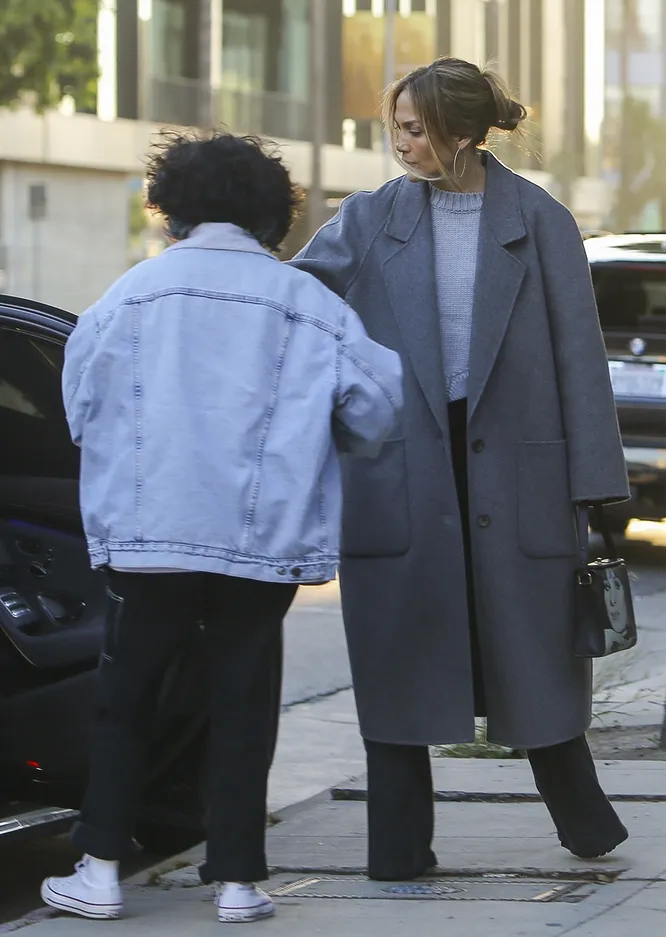Семейная идиллия: Джей Ло в идеальном сером пальто на шопинге с дочерью с Беном Аффлеком