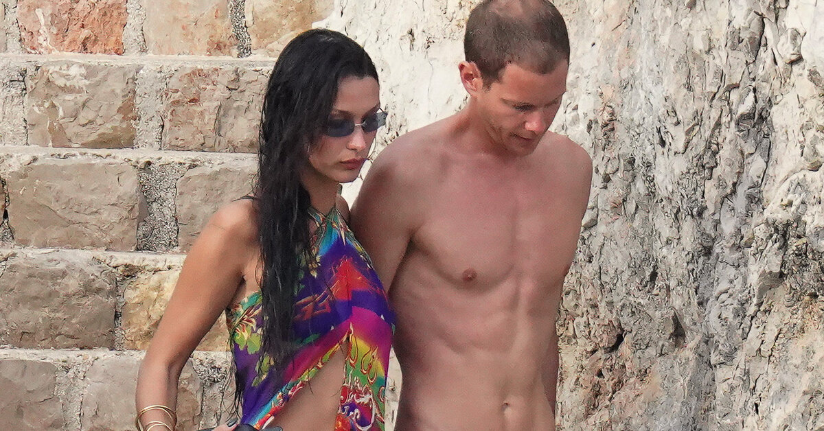 Фотографы заметили пару на одном из уединенных пляжей французской Ривьеры. На Белле были черное бикини, яркая пляжная накидка с принтом и многочисленные трендовые «детские» украшения на шее и запястьях. Она выглядела расслабленной и наслаждалась долгожданным отдыхом с любимым человеком. Модель даже решилась прыгнуть в воду с мостика — судя по выражению лица, такой риск ей очень понравился.