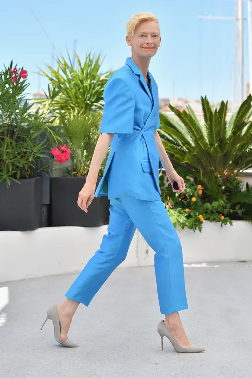 Как затмить всех в Каннах: Тильда Суинтон в небесно-голубом костюме Haider Ackermann
