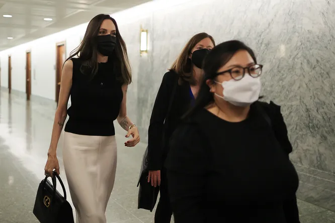 CNN сообщают, что актриса встретилась с пресс-секретарем Белого Дома Джен Псаки, директором по коммуникациям Кейт Бедингфилд, а также членом совета Белого Дома по вопросам гендерной политики Дженнифер Кляйн. Джен Псаки написала твит о визите Джоли: «С утра у меня была небольшая встреча с неутомимой и преданной Анджелиной Джоли. Мы говорили о важности реформирования