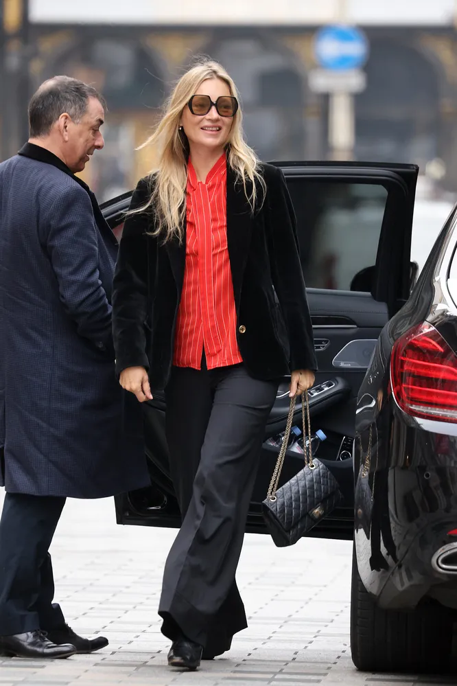 Красный цвет всегда выглядит выигрышно, даже в самых повседневных образах. Чтобы в этом убедиться, достаточно взглянуть на Кейт Мосс. Вчера легенда подиума 90-х была замечена в Лондоне: она направлялась на обед в ресторан Cecconi's. 48-летняя модель надела алую блузку в тонкую белую полоску с завязками на шее. Яркий верх она уравновесила классическими брюками графитового цвета. Сверху Кейт накинула черный бархатный пиджак за золотыми пуговицами на рукавах. Образ дополнила стеганная сумка Chanel на цепочке, черные ботильоны на устойчивом каблуке и любимые шестиугольные солнцезащитные очки, в которых модель часто появляется на публике.