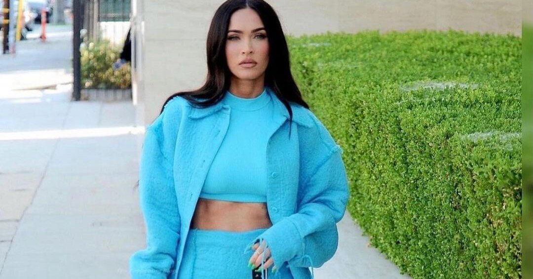 «Рваный» костюм и сумка Jacquemus: Меган Фокс входит в новый сезон в самом ярком оттенке морской волны