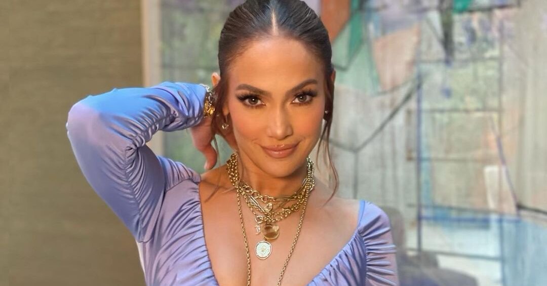 Дженнифер Лопес в последнее время все чаще радует поклонников стильными образами и имеет все шансы быть прозванной новой иконой стиля. Вчера звезда поделилась со своими подписчиками в Instagram (Социальная сеть признана экстремистской и запрещена на территории Российской Федерации) тремя новыми фотографиями, на которых она позирует в атласном лавандовом топе с длинными рукавами, драпировкой и максимально глубоким вырезом, демонстрирующим знаменитые пышные формы поп-дивы. К главному герою своего наряда певица подобрала контрастирующие темные джинсы с широкими штанинами и босоножки на шпильке с массивной платформой. Простой в исполнении но стильный образ Джей Ло дополнила многослойными цепями — одним из главных трендов украшений 2022 года.