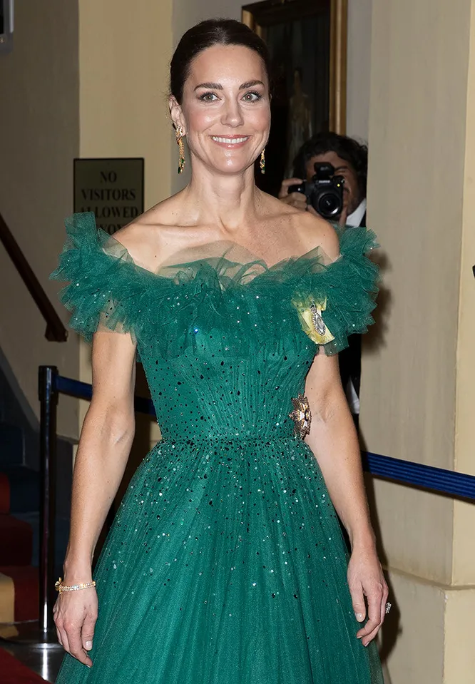 Королевский выход: Кейт Миддлтон в изумрудном платье Jenny Packham не хватает лишь тиары