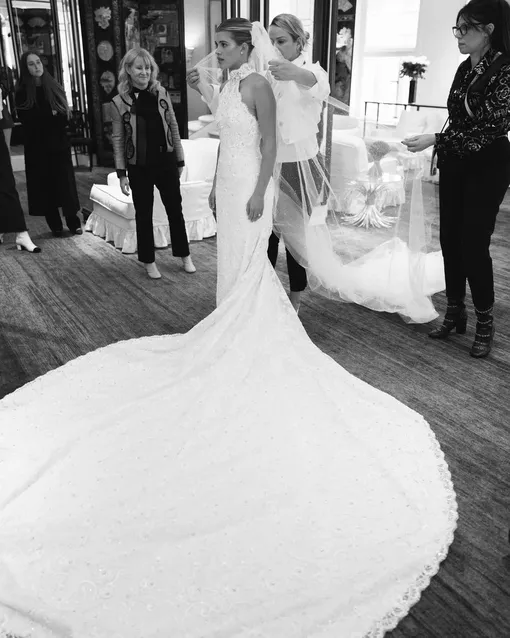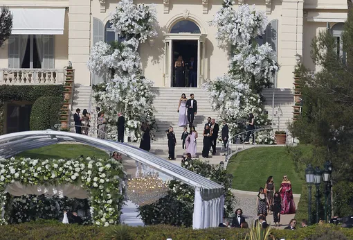 Отдельного внимания, безусловно, заслуживают платья невесты: их было три, и все три — Chanel. По словам невесты, она всегда мечтала выйти замуж в платье французского бренда. Для самой церемонии мастера ателье Дома подготовили белое макси по мотивам платья из текущей кутюрной коллекции. Мини с камелией на груди для афтепати было вдохновлено кутюрным платьем 1993 года, в котором на подиум выходила Клаудиа Шиффер. И, наконец, Chanel также повторили для Софии наряд 1997 года, который в оригинале был черным.