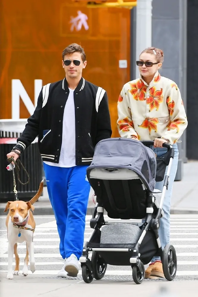 Как примерная мать, Джиджи Хадид провела субботу в компании своей годовалой дочери Кхай. 26-летняя супермодель буквально светилась от счастья, и ее образ идеально соответствовал ее настроению. Джиджи отправилась на прогулку в светлых джинсах прямого кроя и укороченном флисовом бомбере с ярким принтом из оранжевых тропических цветов. Свой расслабленный, но стильный образ Джиджи завершила удобными «уггами-тапочками» в классическом коричневом цвете. Компанию маме с дочерью составил давний приятель Джиджи актер и телеведущий Антони Поровски, который тоже взял на прогулку своего подопечного — бигльбуля по кличке Неон.