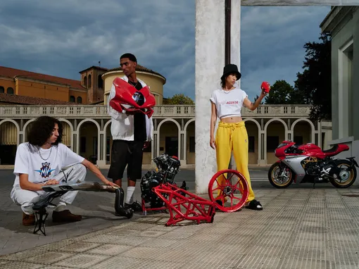 Итальянский концерн мотоциклов MV Agusta решил запустить собственную линейку одежды. Ее первый дроп получил название Logo Level 1, его основным мотивом стало знаменитое лого марки, а направлением — стритвир. При этом вся капсула полностью гендерно-нейтральна — все вещи можно носить как мужчинам, так и женщинам. Ключевая вещь из этой коллекции — красный бомбер с логотипом марки. Над рекламной кампанией работала команда Kaleidoscope — она сняла ее в итальянской коммуне Трезигалло. Этим запуском концерн надеется привлечь как более молодую клиентуру байкеров, так и людей, которые никогда ранее не слышали о MV Agusta.