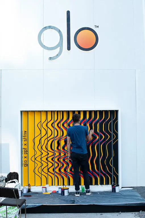 Как и полагается любому фестивалю, Present Perfect ответственно подошел к развлекательной программе в «Севкабель Порт». В своей зоне бренд glo установил арт-объект, созданный в коллаборации с художником Артемом Стефановым (STFNV). Получился призматрон, разделенный на небольшие вращающиеся отрезки, из которых каждый мог составить уникальную картину.