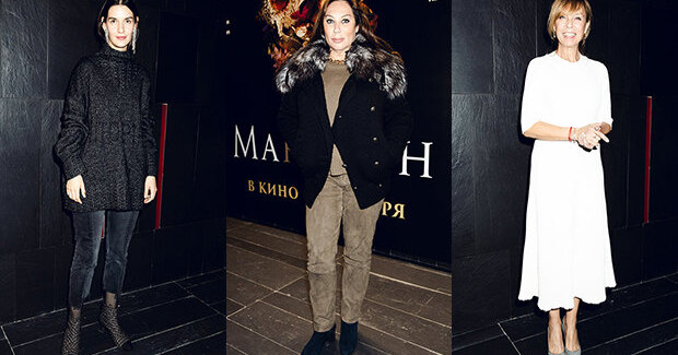 Алена Долецкая, Алла Вербер и Мари Коберидзе на премьере фильма «МакКуин»