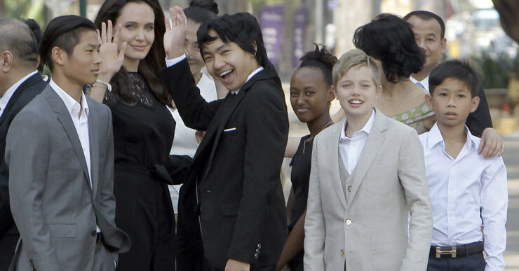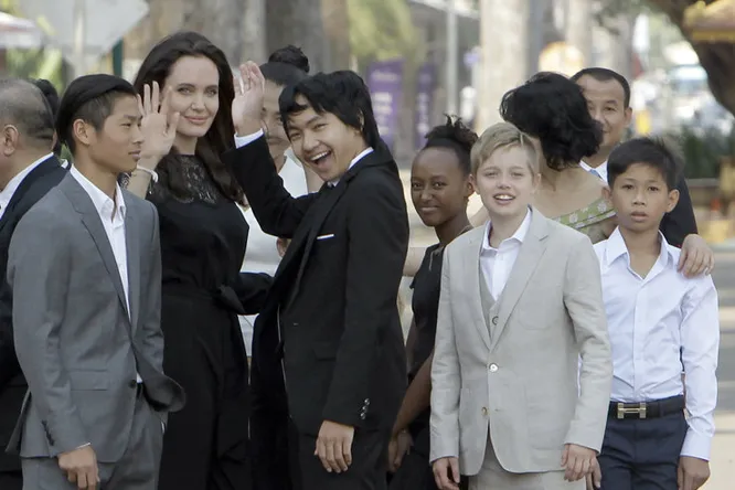 Анджелина Джоли с детьми на премьере своего фильма в Камбодже