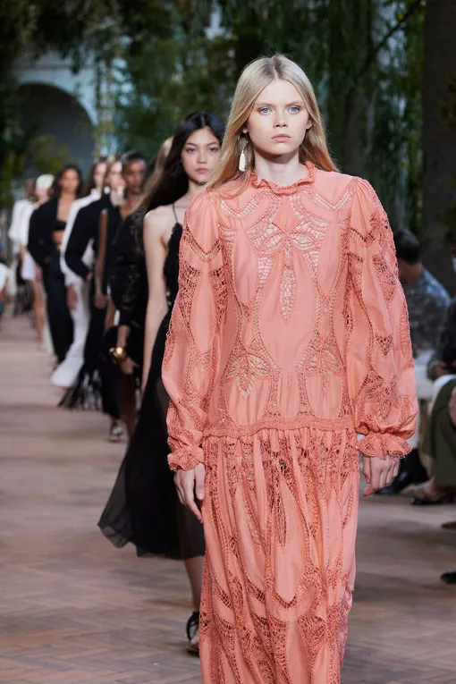 Впрочем, стиль пацифистов 70-х прошел тщательную модерацию в соответствии с представлениями госпожи Ферретти о прекрасном, и на выходе получился более лаконичным, чистым и лишенным ненужных деталей. Вереница изящных платьев из тонких тканей в самом конце уже и вовсе переносит нас из условных 70-х куда-то вне времени и пространства — настолько они эльфийские и эфемерные (что вполне в духе Alberta Ferretti). И это уже совсем другой уровень свободы — без привязке к точке на карте и дню на календаре. И если нам удастся достичь его хотя бы на те 15 минут, что мы смотрим модный показ — это уже большой успех. А потом можно с новыми силами возвращаться на землю.