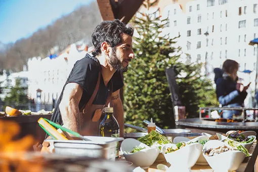 Может показаться, что сейчас в Москве никого нет: весь «Инстаграм (Социальная сеть признана экстремистской и запрещена на территории Российской Федерации)» пестрит фотографиями из сочинского курорта «Роза Хутор». Так и есть: столичные гурманы временно прописались на проходящем в горах Международном гастрономическом фестивале IKRA. Например, вчера там отмечали открытие зон apres-ski шумной вечеринкой в Bosco Fresh & Bar Apres-ski. Главным событием вечеринки стало кулинарное шоу модного израильского шеф-повара Гоме Галили (15 Kitchen & Bar), который готовил ризотто из киноа с морепродуктами и каштанами на открытом огне.