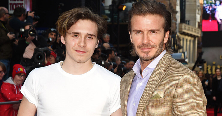 Дэвид и Бруклин Бекхэмы на европейской премьере фильма «Меч короля Артура»