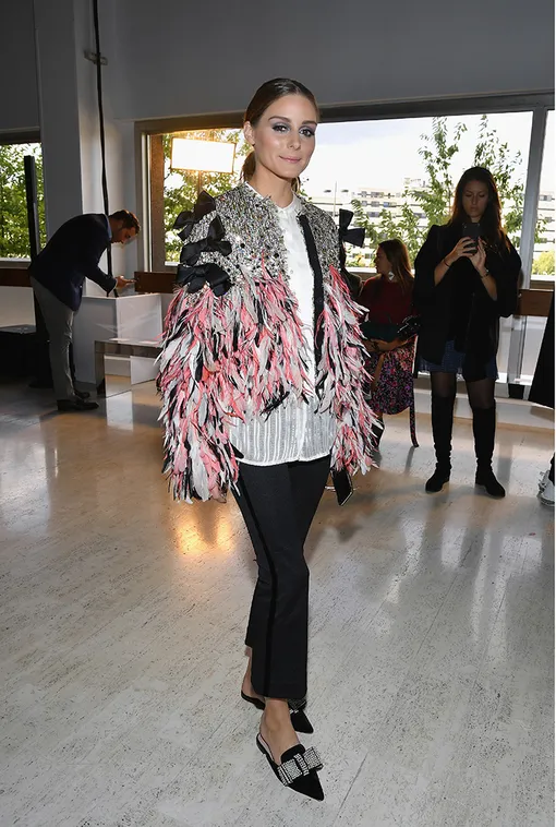 Только что в Париже завершился показ Giambattista Valli. Весенне-летнее шоу посетили многие селебрити. Среди присутствовавших была замечена Елена Перминова. Для модного мероприятия российская знаменитость предпочла образ в стиле спортшик: костюм из тугого топа и темно-синих лосин с высокой талией, двухцветную парку с воротником из денима и белые остроносые ботильоны. Другая звездная гостья, Оливия Палермо, появилась в более строгом наряде: на ней были укороченные черные брюки, шлепки с крупным бантом в стразах, удлиненная белая рубашка и необычный жакет, отделанный цветными перьями, бантами и мерцающими камнями.