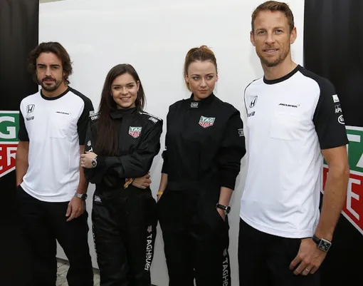 Фернандо Алонсо, Аделина Сотникова, Ингрид Олеринская и Дженсон Баттон