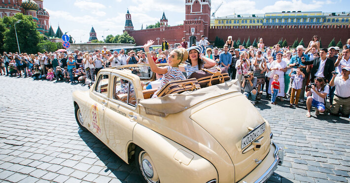 Ежегодный автомобильный заезд ГУМа, прошедший 25 июля, собрал рекордное количество участников: по маршруту, охватившему Красную площадь, Бульварное кольцо и Лужники, проехали 100 ретро-экипажей.