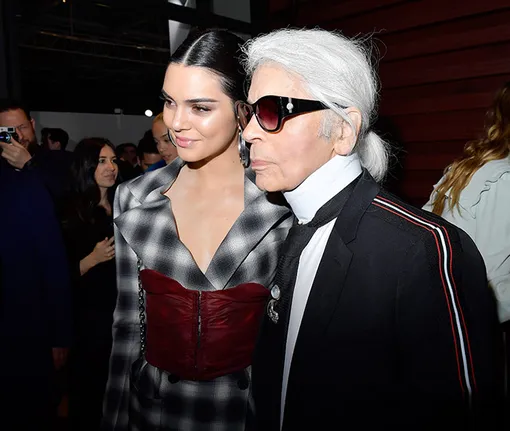 Кендалл Дженнер и Карл Лагерфельд на коктейле LVMH Prize