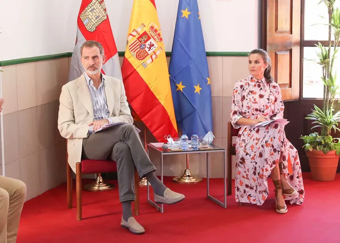 Королева Летиция вышла в свет в платье-рубашке с россыпью цветов и эспадрильях на шнуровке