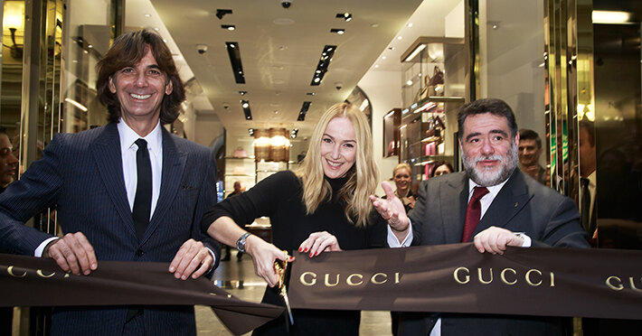 Открытия бутика Gucci в ГУМе мы ждали с апреля – именно тогда Дом объявил о расширении своего присутствия на российском рынке. Начало работы магазина было ознаменовано масштабной вечеринкой, среди гостей которой были замечены Екатерина Моисеева, Константин Андрикопулос и Наталья Лесниковская: они смогли первыми «протестировать» новое шопинг-пространство, расположившееся сразу на двух уровнях. Креативный директор Gucci Фрида Джаннини лично посетила торжественное мероприятие и даже, заручившись «поддержкой» супруга Патрицио ди Марко и Михаила Куснировича, перерезала символическую коричневую ленту. Ну и наконец еще одна приятная новость: в честь открытия магазина Дом запустил специальную коллекцию, в которую вошли коктейльные и вечерние платья, брюки клеш, строгие юбки-карандаш, а также всевозможные меховые изделия – от жилетов из лисы до головных уборов.
