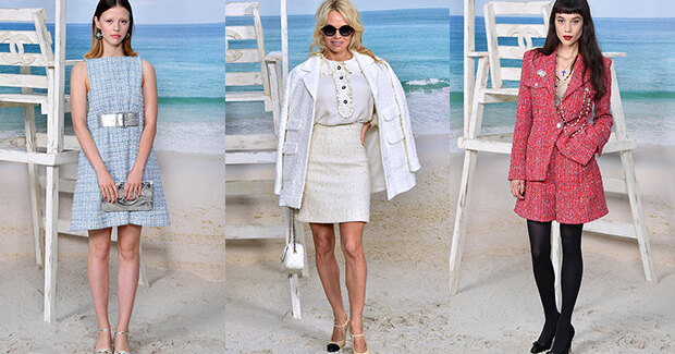 Традиционно в последний день Недели моды в Париже новую коллекцию показал Карл Лагерфельд. С его легкой руки Гран-пале уже превращался в космодром, супермаркет, греческие развалины, бульвар, тропики. Сегодня кутюрье пригласил гостей на настоящий пляж. Модели дефилировали вдоль песочного побережья, под ногами плескалась вода, вдалеке виднелись горы, а Лагерфельд приветствовал всех с деревянного мостика. На импровизированный пляж Chanel пожаловали музы модного Дома: Каролин де Мегрэ, Инес де ля Фрессанж, а также Миша Гот и (неожиданно) Памела Андерсон.
