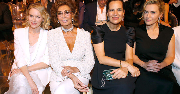 Первый ряд: Вика Газинская, Софи Лорен и Кейт Уинслет на шоу Armani Privé