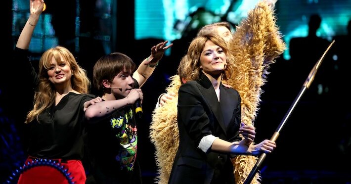 Минувшим вечером на сцене бывшего клуба «Артист» на Трехгорной мануфактуре прошла премьера весьма нетрадиционной постановки братьев Олега и Владимира Пресняковых. Спектакль с элементами драмы, импровизации, стендапа и музыкального шоу, действие которого происходит на круглой сцене, больше напоминающей цирковой манеж, демонстрирует игру актеров на 360 градусов. В ролях – Анна и Надежда Михалковы, Михаил Трухин, Сергей Походаев и другие, среди персонажей – Аркадий Дворкович, Дэниэл Рэдклифф, герои игры Angry Birds и даже голосовая помощница Siri.