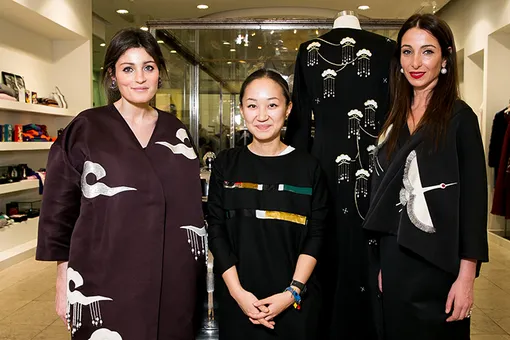 22 декабря в бутике Юлии Ремпель Le Grand Bazarr состоялась презентация вечерней коллекции Masterpeace и J.Kim. Успевшие полюбиться всем светским модницам кимоно дизайнеры превратили в платья и костюмы, расшитые нефритом и жемчугом. Поддержать сестер Линович пришли Анастасия Беляк, Алла Акперова и Анастасия Винокур.
