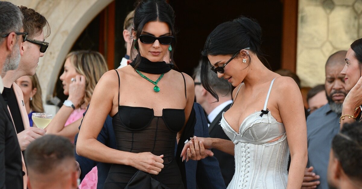 На основное мероприятие, которое состоялось вечером 27 июня, в пятницу, гости отправлялись от отелей в смокингах и вечерних платьях. Дресс-код — black tie. Если говорить о самих ансамблях, то можно сделать один глобальный вывод — ретро-мода правит бал. И «свадьба года» не стала исключением — на ней были замечены и Ким Кардашьян в винтажном Versace, Кори Гэмбл и Крис Дженнер в винтажном Valentino, и Кендалл Дженнер в архивном Tom Ford. Также нельзя не отметить украшения, которые дополнили черное платье Кендалл — серьги и колье Lorraine Schwartz с 245 каратами колумбийских изумрудов. А вот Кайли Дженнер остановилась на платье турецко-английского дизайнера Dilara Findikoglu.