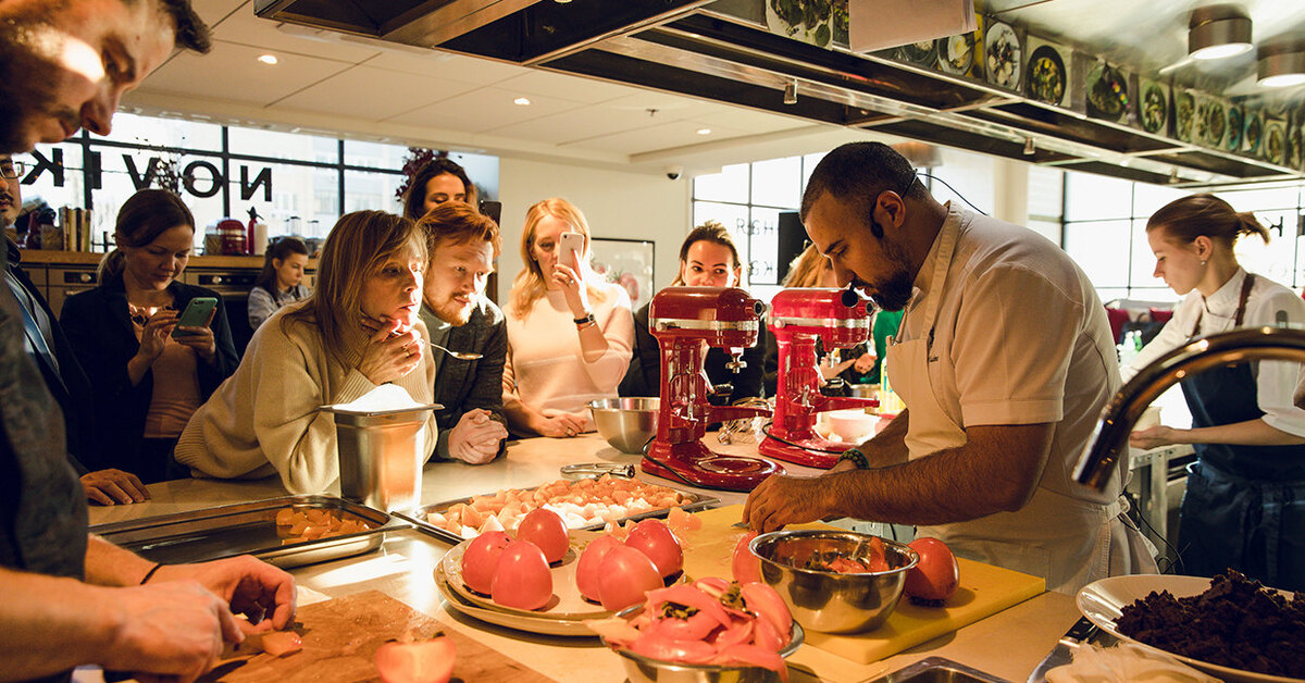 29 ноября в кулинарной школе Novikov School состоялся бранч, посвященный приближающемуся столетию KitchenAid. Героем дня стал шеф Владимир Мухин, возглавивший кулинарный мастер-класс для всех собравшихся гостей.