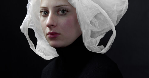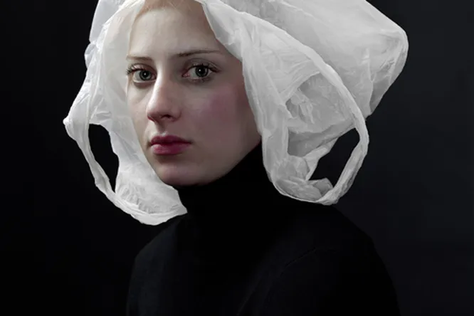 Чтобы добиться сходства с парадными средневековыми портретами, Хендрик Керстенс устраивает для дочери настоящий маскарад с использованием полиэтиленовых пакетов, рулонов туалетной бумаги, гофрированных плафонов или банальных полотенец.