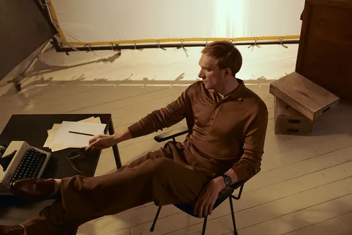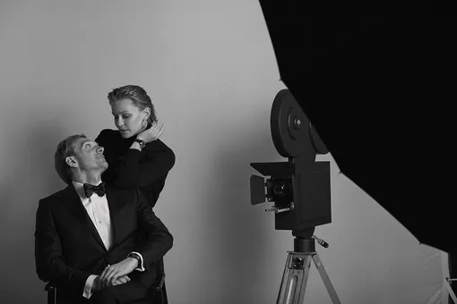 Мы встречаемся в фотостудии после съемки Юли и Андрея для The Symbol. Она хоть и немного нервно, но улыбается, он, чтобы разрядить обстановку, старается шутить. Напряжение вполне объяснимо: за день до нашего интервью разослали официальный пресс-релиз о том, что актриса вместе с режиссером Климом Шипенко отправится в космос снимать фильм «Вызов». «Даже не знаю, больше я рад или расстроился, – уже серьезно признается Андрей. – С одной стороны, кто, если не Юля? А с другой – ее долго не будет, а найти такого творческого партнера в нашей профессии, с которым ты понимаешь друг друга с полуслова, практически невозможно». Из-за предстоящей 12-дневной экспедиции на МКС Пересильд действительно придется временно отойти от дел и в кино, и в театре – в том числе и в их общем с Бурковским спектакле «Солнечная линия» в Центре имени Вс. Мейерхольда. Слишком много всего еще нужно успеть на Земле до 5 октября, на которое назначен вылет. Например, освоиться в полноразмерном макете российского сегмента международной пилотируемой орбитальной станции и поправиться на полтора десятка килограммов. «Меньше всего сейчас я хочу устроить из этой новости вечеринку. Даже дома мы особо эту тему не обсуждаем, – объясняет Юля, за последние 24 часа давшая добрую сотню комментариев прессе. – Впереди много сосредоточенной работы и сплошных экспериментов: еще никогда никого не готовили к космосу за четыре месяца». К счастью, стратегического запаса премьер у актрисы хватит, чтобы заполнить возникшую паузу. Только с Андреем на двоих – три новых проекта.