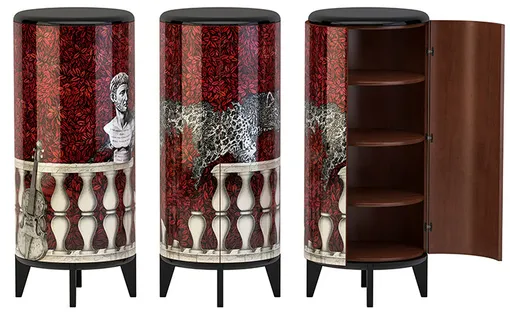 Специально к открытию Milan Design Week — 2017, аналога Недель моды в мире дизайна, известный итальянский бренд Fornasetti подготовил коллекцию предметов мебели под названием Cilindro, в которую вошли столик и два шкафчика в форме цилиндров. Все они украшены фирменными объемными рисунками Fornasetti, сюжеты которых были придуманы отцом-основателем бренда — художником с неиссякаемой фантазией Пьеро Форназетти.