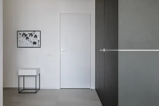 Всегда аккуратный плинтус, скрытый или геометрически простой, выполненный из металла или алюминия. Дверные ручки, обрамления, стыковочные профиля, розетки и выключатели, смесители – всему уделяется максимум внимания. Они не просто важны, они являются одними из главных элементов интерьера. Выполняются из качественных натуральных материалов: латуни, металла, алюминия.