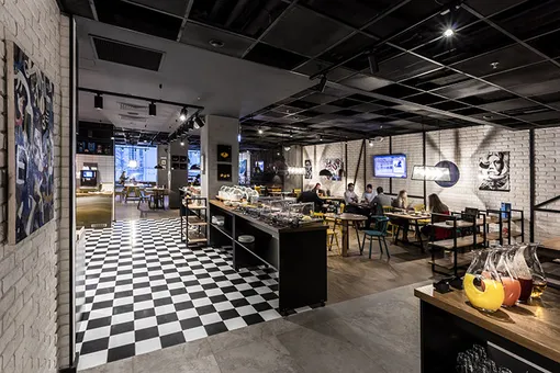 «Пента» расположилась в одном из легендарных зданий-книжек на Новом Арбате, 15, в комплексе The Book. Вместо ресепшена и лобби в Pentahotel – пенталаундж. Это и бар, и ресторан, и место, где можно почитать книгу, поработать, поиграть в бильярд или видеоигры, а по вечерам – послушать лекцию или потанцевать под DJ-сет. Здесь все сделано так, чтобы уютно и интересно было и гостям, и резидентам. Обстановка располагает к тому, чтобы пригласить сюда заезжего друга: место в одно мгновение разрушит стереотип о хмурой деловой Москве, чьи жители никогда не улыбаются.