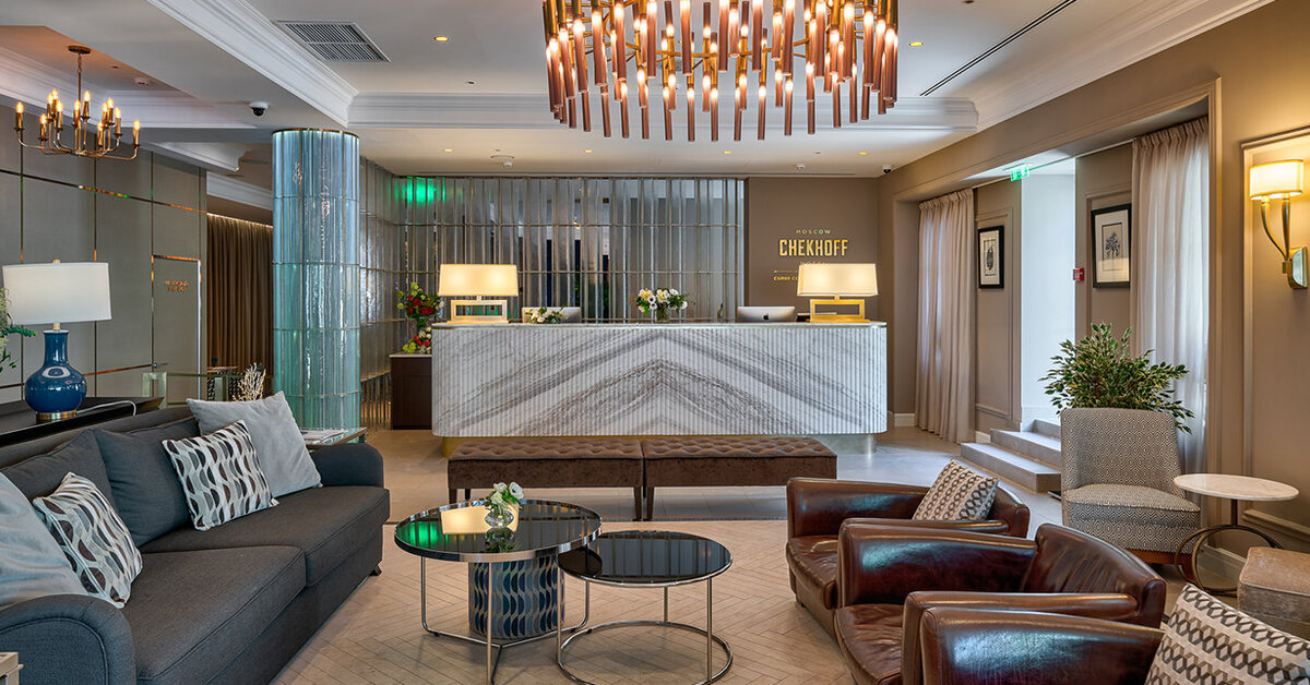 Вдоль всего лобби тянутся широкие панорамные окна. Кажется, выглянешь из них – и увидишь старую Москву Гиляровского. А внутри – уют и домашняя атмосфера (нет только чеховской безнадеги – вот, пожалуй, единственное, что не связывает место с главным героем концепта). В отеле 95 номеров 5 категорий. Интерьер простой, но элегантный, в пастельных тонах – под стать тонкой чеховской иронии. Номера возвращают в XXI век своим оснащением: встроенные док-станции для зарядки гаджетов, Smart TV и Wi-Fi (как бы обрушилась та самая ирония на интернет-зависимость современного человека!), английская косметика Molton Brown и круглосуточное обслуживание. На первом этаже находится Chekhoff Cafe & Bar, разделенный на ресторан и бар. В ресторане подают блюда классической русской кухни в современном прочтении, в баре наливают авторские напитки от известного московского шеф-бармена Василия Жеглова. Словом, все для того, чтобы «трескать вино и беседовать о литературе».