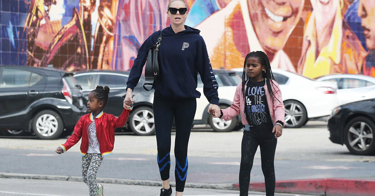 Шарлиз Терон с дочерью Августой и сыном Джексоном
