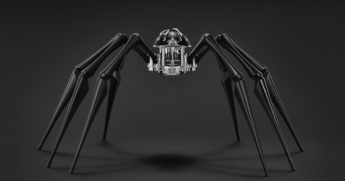 Проект, разработанный Бюссером, не имеет аналогов: высокотехнологичные механизмы скрыты под лаконичным куполовидным корпусом, дающим часам сходство с телом паука. Время отображается на «брюшке» металлического насекомого, к которому присоединены восемь подвижных «ног», подстраивающихся под положение часов. Максимального сходства ювелиры добились, исполнив свое изделие в реалистичном черном варианте, рядом с которым золотой «паук» Arachnophobia выглядит совсем уж фантазийным.