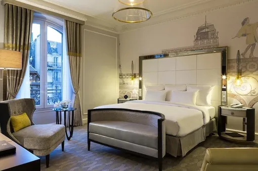 За новый облик здания отвечает известное дизайнерское бюро Richmond International, в портфолио которого уже немало подобных проектов. Дизайнеры сохранили историческую атмосферу, добавив интерьерам парижского лоска. Через входной вестибюль гости попадают в Le Grand Salon — впечатляющее пространство с 14-метровыми потолками, украшенными фресками с ручной росписью. Интерьеры в стилистике La Belle Epoque отсылают к самым интересным страницам истории богемного Парижа. В отеле есть места и более уединенные, но не менее изысканные: например, Le Petit Bar. Особой гордостью стал 85-метровый люкс Maria Callas Suite с двумя спальнями, спроектированный в стиле эпохи барона Османа.