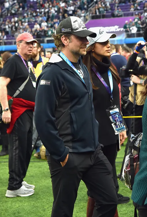 Сегодня ночью вся Америка была прикована к экранам телевизоров. На стадионе U.S. Bank Stadium в Миннеаполисе состоялось одно из главных спортивных событий США — Super Bowl, или Суперкубок, финальная игра чемпионата по американскому футболу. Посмотреть на борьбу между «Филадельфия Иглз» и «Нью-Ингленд Пэтриотс» пришли многие знаменитости, в числе которых оказались и Брэдли Купер с Ириной Шейк. Молодые родители отправились на игру без дочки, так что смогли насладиться компанией друг друга и отдохнуть от родительских обязанностей.