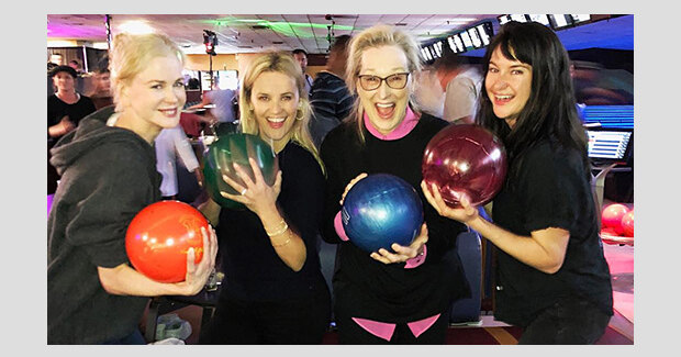 Последние несколько месяцев проходят съемки 2 сезона одного из самых популярных сериалов современности — «Большая маленькая ложь». В новых эпизодах к Николь Кидман и Риз Уизерспун присоединилась легендарная оскароносная дива Голливуда Мэрил Стрип. Самая титулованная актриса кинематографа исполняет роль мамы убитого мужа Селесты (Кидман) — героя Александра Скарсгарда. Поклонники сериала с интересом наблюдают за съемочным процессом, который часто освещает Риз Уизерспун в своем «Инстаграме (Социальная сеть признана экстремистской и запрещена на территории Российской Федерации)». Так, вчера звезда поделилась фото с небольшой вечеринки после съемочного дня: Риз, Николь, Мэрил и Шейлин Вудли (исполнительница одной из главных ролей) провели вечер в боулинг-клубе.