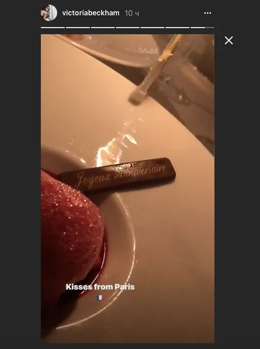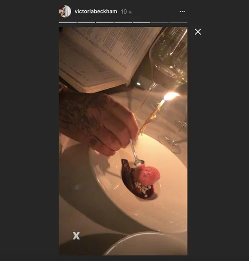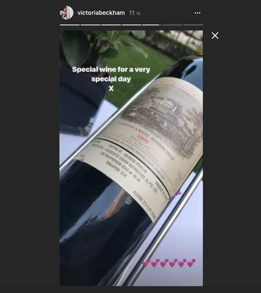 Свой праздник любви пара отметила романтическим ужином, оставив своих четверых детей дома. В честь такого знаменательного повода изысканные блюда супруги запивали бутылкой вина за 700 фунтов, снимком которой дизайнер поделилась со своими подписчиками.