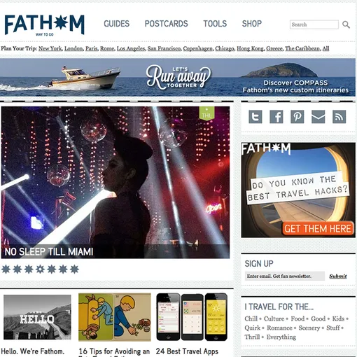 Fanthom (fathomaway.com). Редакторы этого ресурса, кажется, собрали максимум информации на одном сайте. Здесь можно не только почитать рецензии на отели и рестораны, но и найти подборки лучших статей о городских развлечениях и заведениях от разных заслуживающих доверия авторов.