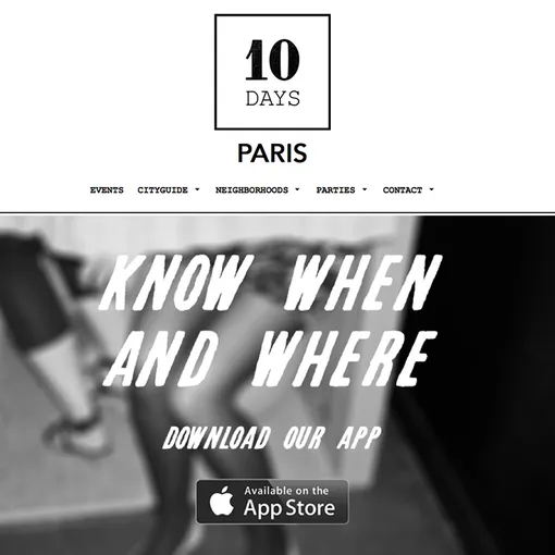 Ten Days in Paris (tendaysinparis.com). Один из моих любимейших блогов, как явствует из названия, посвящен Парижу. Здесь можно найти как анонсы предстоящих вечеринок, так и отчеты с прошедших мероприятий. Но, пожалуй, самая интересная рубрика – это «Where to Meet»: интервью с молодыми дизайнерами, диджеями и просто интересными молодыми парижанами об их любимых местах. Что очень удобно, в разделе «Neighborhoods» все адреса, достойные посещения, рассортированы по районам города.