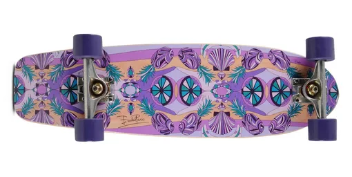Цветовые решения радуют глаз: сочетания тыквенно-желтого с фуксией или оттенками бирюзового, а также союз сочных сиреневых тонов подойдут тем, кто не привык оставаться в тени. Для сторонников сдержанности во всем Шатель разработала и эффектный черно-белый вариант. Найти ее интерпретацию принтов Emilio Pucci можно на обороте всех досок Street и Cruiser, которые этой осенью вышли ограниченным тиражом. Дебютная коллекция скейтбордов пока доступна исключительно на официальном сайте Emilio Pucci.